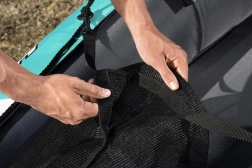Praktische details zoals de veiligheidslijn rondom, opbergruimte en uitneembare tas maken het organiseren van je uitrusting eenvoudig. Met de meegeleverde handpomp ben je snel vaarklaar; na afloop laat je de kajak eenvoudig leeglopen en compact opbergen.