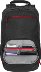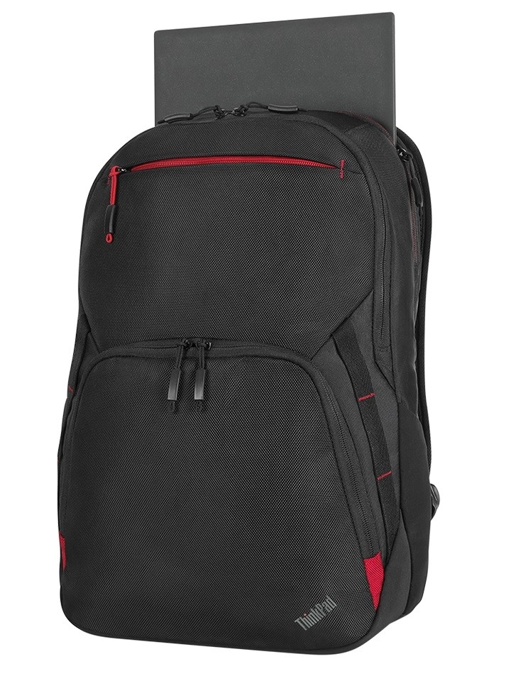 De stijlvolle en duurzame ThinkPad Essential Plus 15,6 (eco) rugzak combineert een zakelijke look met sportieve functionaliteit. Hij biedt een aparte laptopvak voor 15,6", ruime opbergcompartimenten en slimme vakken voor accessoires. Dankzij gerecyclede materialen en ballistisch nylon is hij bestand tegen weersinvloeden en dagelijks gebruik. Voor maximaal comfort zijn er ergonomische schouderbanden, een zijvak voor een fles en een riem om over het handvat van een koffer te schuiven.