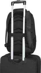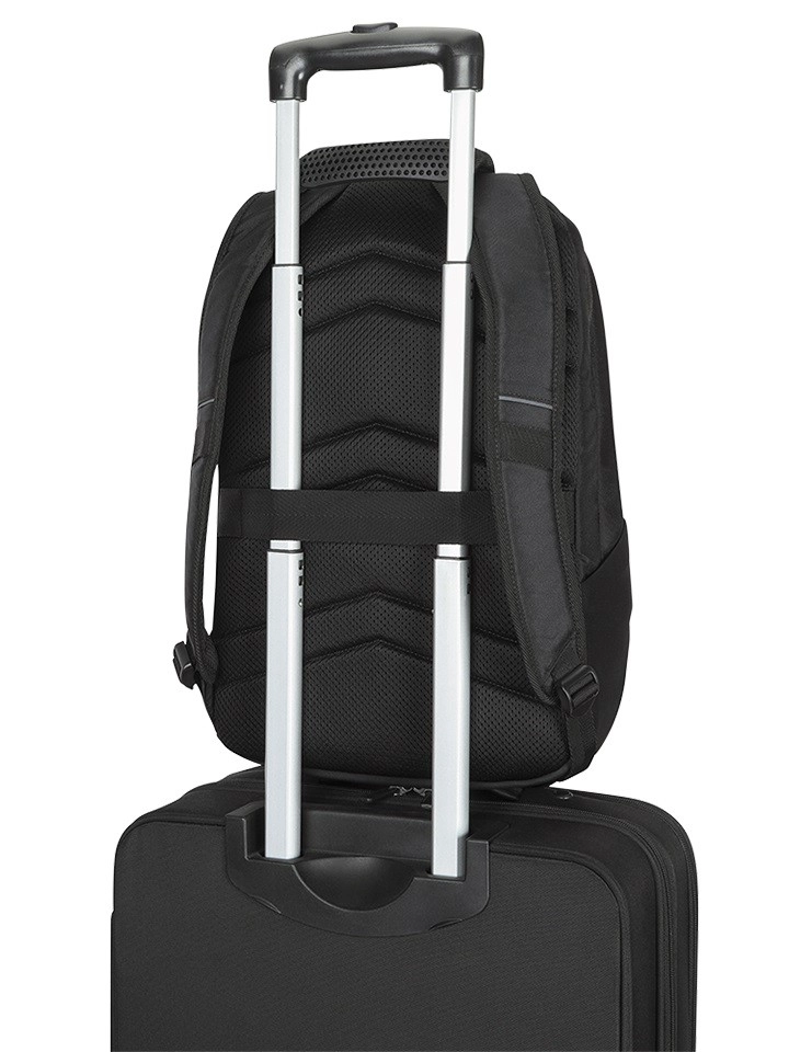 Dankzij de doorvoerband schuif je de rugzak eenvoudig over het telescopische handvat van je koffer. Reizen wordt zo comfortabeler, veiliger en met vrije handen.