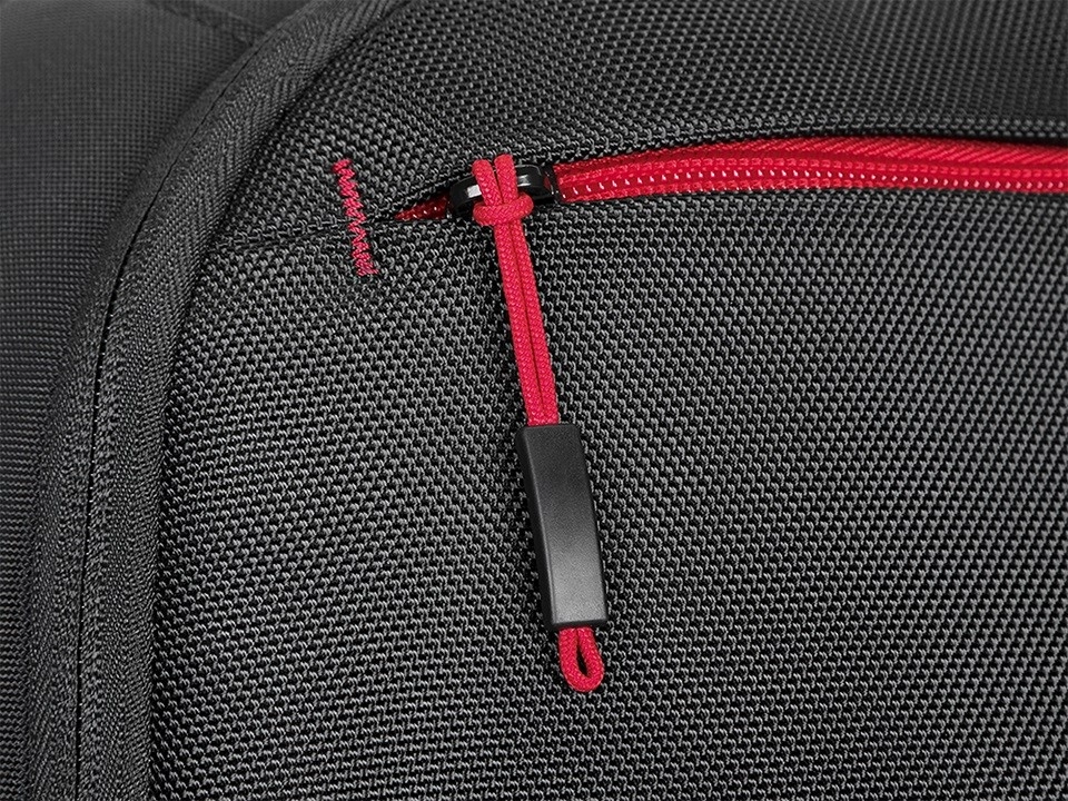 - afzonderlijk gevoerd laptopvak, ruim hoofdcompartiment, voorste organizer, sneltoegangsvak voor telefoon/bril, zijvak voor fles, externe lussen voor bevestiging