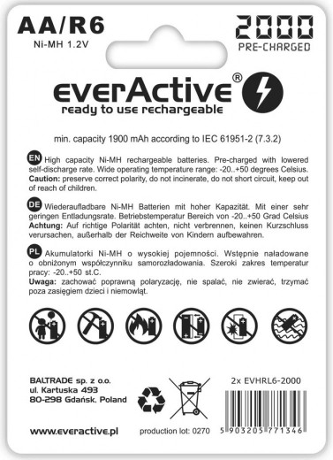 Betrouwbare oplaadbare AA/R6-batterijen met een capaciteit van 2000 mAh in een verpakking van 2 stuks met Ready To Use-technologie – geleverd voorgeladen en klaar voor direct gebruik. De Silver Line-serie combineert hoge kwaliteit, lange gebruiksduur en een uitstekende prijs-kwaliteitverhouding.