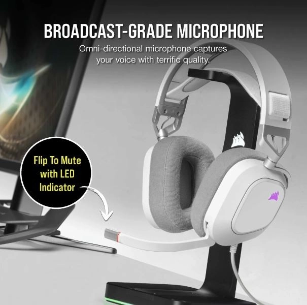 Het gamingheadset Corsair HS80 RGB USB biedt eersteklas surroundsound Dolby Audio 7.1 dankzij speciaal afgestemde 50mm neodymium drivers.