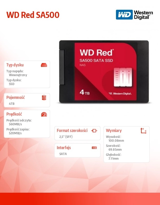 De WD Red SA500 NAS SSD is gemaakt voor netwerkopslag waar stabiliteit en snelle respons cruciaal zijn. Geoptimaliseerde NAS-caching zorgt voor vlotte toegang tot veelgebruikte data en soepele workflow, zelfs onder hoge belasting.