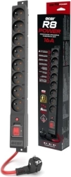 De ACAR R8 Power is een versterkte overspanningsbeveiligde stekkerdoos uit de acar-AXON familie, ontworpen voor gebruikers die betrouwbare bescherming en een hoge belasting tot 3680 W vereisen. Hij biedt acht geaarde stopcontacten 16A/250V in een behuizing van slechts 44,4 cm lang, waardoor hij zelfs op een bureau past.
