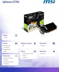 MSI GeForce GT 710 2GB is een uitstekende keuze voor gebruikers die een kwalitatieve grafische kaart zoeken voor een homecinema of kantoorgebruik. Dankzij het GDDR3-geheugen en de 64‑bit geheugensnelweg kun je rekenen op vloeiende werking bij alledaagse kantoortaken en het afspelen van video in hoge resolutie.