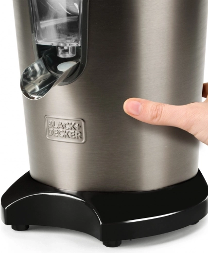 De elektrische citruspers van BLACK+DECKER brengt topprestaties en een strak design in elke keuken. De krachtige motor met een vermogen van 350 W in combinatie met de stevige aluminium hefboom levert sterke en constante druk, wat de sapopbrengst maximaliseert en de perstijd tot een minimum beperkt. Het roestvrijstalen filter met traploze pulpinstelling laat je sap bereiden precies naar smaak – van fijn tot rijk aan vezels.
