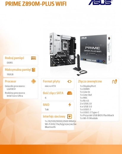 ASUS PRIME-moederborden zijn door experts ontworpen om het volledige potentieel van de nieuwste Intel Core Ultra-processors (Series 2) te benutten. Het PRIME Z890M-PLUS WIFI-moederbord, met een robuust stroomontwerp, uitgebreide koeloplossingen en slimme afstemmogelijkheden, biedt gebruikers en doe-het-zelvers diverse prestatie-optimalisaties via intuïtieve software- en firmwarefuncties. Het is ontworpen om klaar te zijn voor geavanceerde AI-pc’s en levert de prestaties en connectiviteit die nodig zijn voor veeleisende AI-toepassingen.