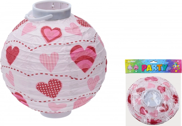 Lampion bol 20 cm op batterijen met hartjesmotief