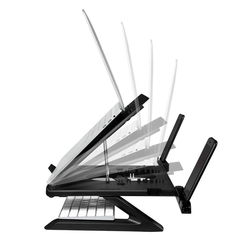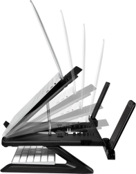 - Negen verschillende posities voor het aanpassen van de hoogte en hoek van de laptop