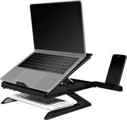 De laptopstandaard met houder voor smartphone is de ideale oplossing voor het verbeteren van werkcomfort. Deze standaard stelt u in staat het scherm van de laptop tot ooghoogte te tillen, wat de kijkhoek verbetert en nekspanning vermindert.