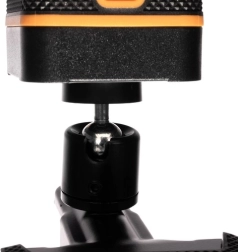 Verstelbare klem met metalen 360°-kop voor moeiteloze, precieze richtingen. Het robuuste etui met foam beschermt het apparaat tijdens transport en opslag.