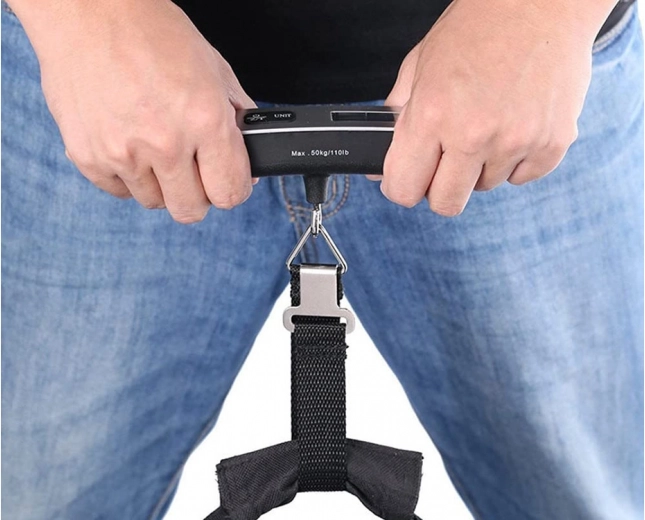 De weegschaal biedt een nauwkeurigheid van 10 g en meting in twee eenheden (kg/lb). De TARE-functie vergemakkelijkt het nulstellen met de riem, de HOLD-modus houdt de gemeten waarde vast en de automatische uitschakeling spaart de CR2032-batterij die is inbegrepen. Een praktische extra is ook de temperatuurmeting in °C en °F.