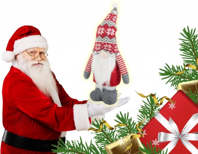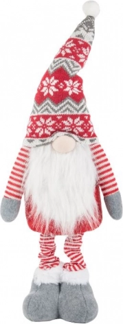Stijlvolle Scandinavische kabouter in rode tinten met een lange gebreide muts, zachte witte baard en gestreepte mouwen is de ideale decoratie voor de winterperiode. De verstelbare hoogte van 50–70 cm laat je het figuurtje aanpassen aan de plek waar hij het beste tot zijn recht komt – van vensterbank tot schouw.