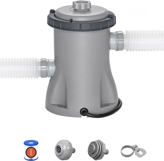 Flowclear cartridgefilter met waterdoorstroming (pompcapaciteit): 1.249 l/u. Waterdoorstroming via het geïntegreerde zwembadsysteem (systeemdoorstroming): 1.060 l/u. Kan worden aangesloten op alle zwembaden met een inhoud van 1.100–8.300 l. Aansluitmaat voor slang: 3,2 cm. Filterpatroon: 58093(I). 110–120 V~, 0,2 A. 220–240 V~, 16 W. Bevat: 1 x cartridgefilter