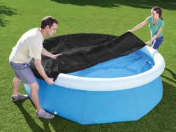 Kies een slimme oplossing voor schoner water en minder onderhoud. Het zeil is geschikt voor ronde opzetzwembaden met opblaasbare rand met een diameter van 244 cm (Fast Set-serie). De compacte verpakking is makkelijk op te bergen en ook leuk om cadeau te doen.