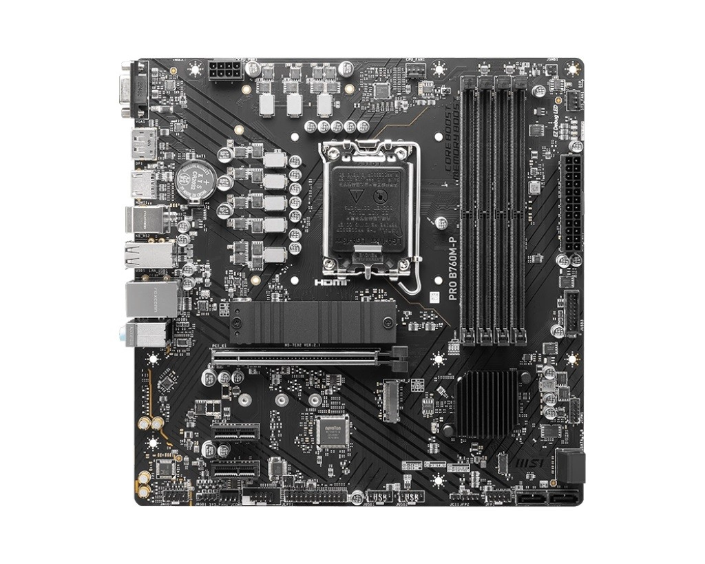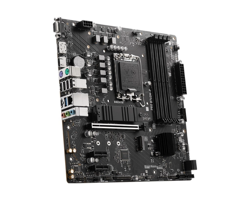 Bouw een snel en stabiel PC‑systeem op het Intel‑platform met het MSI PRO B760M‑P bord. Dankzij de ondersteuning voor Intel Core processoren van de 12e/13e generatie voor LGA1700 en dual‑channel DDR5 geheugen bereik je hoge prestaties bij werk en gaming. De geïntegreerde technologieën Core Boost en Memory Boost zorgen voor schone voeding en een hoogwaardig signaal voor maximale stabiliteit en compatibiliteit.