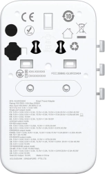 Uitschuifbare stekkers EU/UK/US/AUS/JP/CN en ingang 110–250 V. Eén adapter voor de meeste landen, geen extra verloopstukjes nodig.