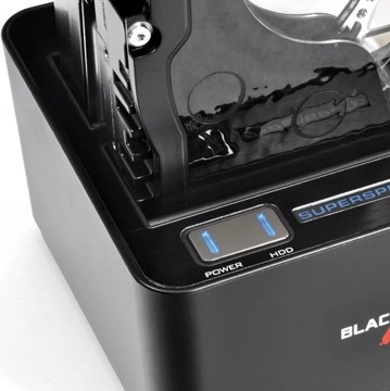 Het tweesleufs dockstation Thermaltake BlacX Duet 5G maakt het mogelijk om gelijktijdig tot twee 2,5"- of 3,5"-schijven aan te sluiten met een capaciteit tot 2 TB per slot. Het biedt de snelle interface USB 3.0, ondersteuning voor hot-swap en plug & play zonder stuurprogramma’s te installeren – gewoon aansluiten en gebruiken.
