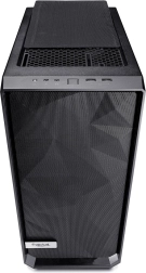 Het voorpaneel met asymmetrisch roostermotief geeft de behuizing niet alleen een unieke uitstraling, maar zorgt ook voor efficiënte koeling van de componenten.
