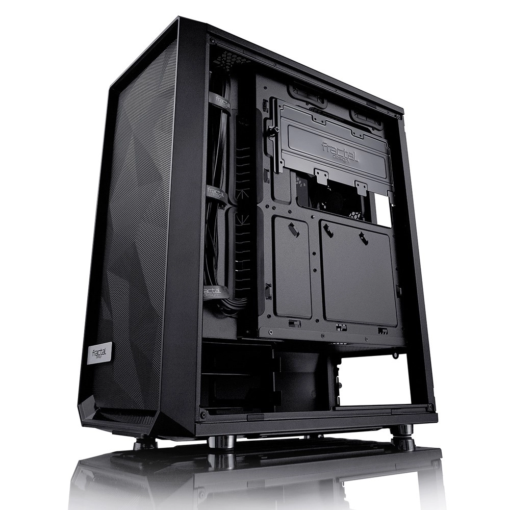 De Fractal Design Meshify C is voorzien van een open interne lay-out, wat de installatie en het beheer van high-end componenten in een compact formaat vereenvoudigt. De behuizing ondersteunt moederborden in verschillende formaten, waaronder ATX, micro ATX en ITX, en biedt zeven uitbreidingsslots, waardoor uitbreidingsflexibiliteit wordt geboden.