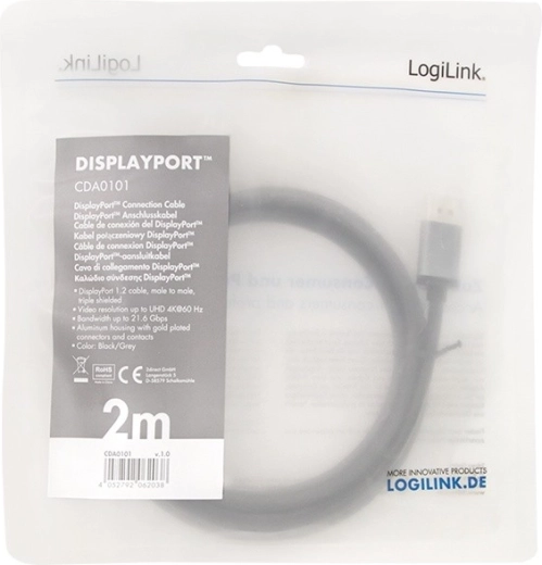 Geniet van kristalhelder beeld met een resolutie tot 4K/60 Hz dankzij de DisplayPort-kabel, volledig compatibel met de DisplayPort 1.2-standaard. Deze kabel ondersteunt verschillende overdrachtsnelheden en technologieën zoals RBR, HBR, HBR2, DPCP, HDCP 1.3 en 3D. Met de mogelijkheid om tot 24 monitoren in een keten te verbinden, is deze kabel geschikt voor zelfs de meest veeleisende toepassingen.