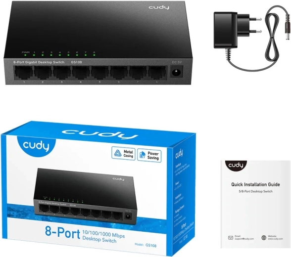 Acht niet-blokkerende 10/100/1000 Mb/s Ethernetpoorten zorgen voor razendsnelle gegevensoverdracht zonder onderlinge interferentie.