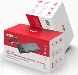 De dubbele, hoogwaardige chipset met ondersteuning voor UASP maakt efficiënte commandoverwerking mogelijk en levert tot tientallen procenten hogere snelheden dan standaard USB. Ondersteuning voor TRIM helpt consistente prestaties en een langere levensduur van uw NVMe-schijven te behouden. De aluminium behuizing met geïntegreerde ventilator en meegeleverde thermische pads garandeert stabiele temperaturen, ook bij langdurige overdrachten. Het Secure‑Lock-mechanisme beschermt tegen per ongeluk openen en maakt snelle, gereedschapsloze schijfwissel mogelijk.