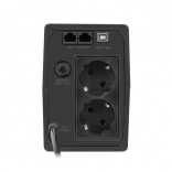 De ingebouwde microprocessorgestuurde regeling houdt het bedrijf in de gaten, laadt de batterij automatisch in stand-bymodus en start zichzelf opnieuw op na herstel van het net. Overbelastingsbeveiliging voorkomt schade bij excessieve belasting, terwijl de RJ-11/RJ-45 overspanningsbeveiliging data- en telefoonlijnen beschermt tegen pieken en storingen.
