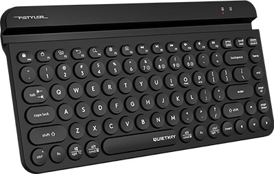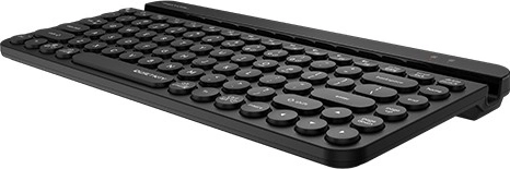 Het draadloze toetsenbord TYSTYLER is ontworpen voor de moderne gebruiker die comfort en praktische eigenschappen waardeert. Dankzij de gepatenteerde QuietKey technologie vermindert het het geluid tijdens het typen van 35 dB naar 14 dB. Het moderne ontwerp wordt gekenmerkt door ronde toetsen in retrostijl die comfortabel typen mogelijk maken. Het toetsenbord is uitgerust met een ingebouwde tablethouder, wat het een veelzijdig hulpmiddel maakt voor verschillende soorten apparaten.