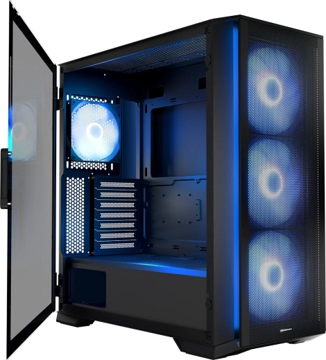 Drie 140mm ARGB-ventilatoren aan de voorzijde en één 120mm ARGB-ventilator aan de achterzijde zorgen voor efficiënte luchtstroom voor optimale koeling van componenten.