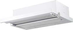 Deze telescopische afzuigkap in het wit gaat naadloos op in het keukenontwerp en bespaart ruimte dankzij de onderbouwmontage. De uitschuifbare kap vergroot het actieve zuigoppervlak precies wanneer u kookt en schuift u na afloop eenvoudig weer in.