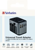 De reisadapter VERBATIM UTA-03 is een slimme oplossing voor stroomvoorziening in meer dan 180 landen. Biedt 6-in-1 laden via een AC-doorvoer, 3× USB‑C en 2× USB‑A, ondersteunt Power Delivery 30 W en Quick Charge 3.0 voor supersnel laden. Compact, veilig en ideaal voor laptops, telefoons en accessoires.