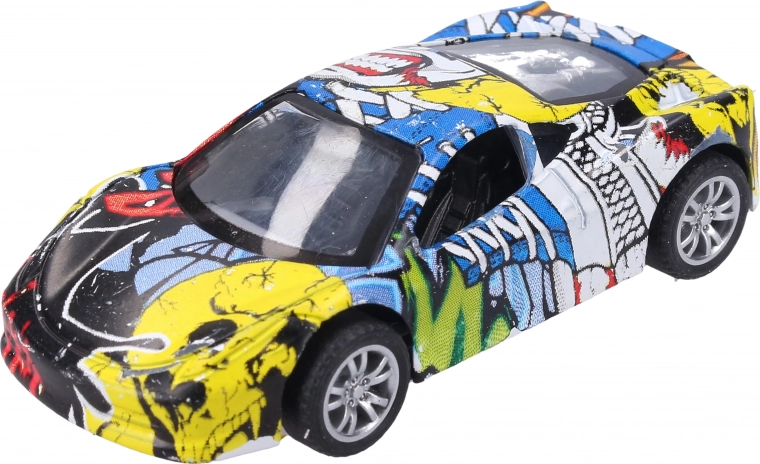 Stijlvol metalen autootje met een origineel graffiti-design dat zowel kleine als grote verzamelaars zal bekoren. De compacte lengte van 9 cm, terugtrekmechanisme en 3 verschillende varianten maken het een geweldige keuze voor zowel speelplezier als de vitrine.