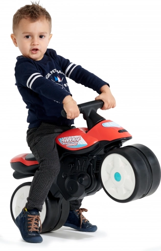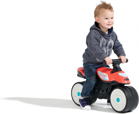 De stijlvolle loopfiets Falk Baby Moto Team Bud Racing in het rood is een geweldig eerste voertuig voor kleine rijders. Dankzij de stille rubberen wieltjes geschikt voor zowel appartement als tuin, en het helpt kleine kinderen stabiliteit, motoriek en zelfvertrouwen te ontwikkelen. Het lage zwaartepunt en de zithoogte van 29 cm zorgen voor comfortabel opstappen en veilig rijden.