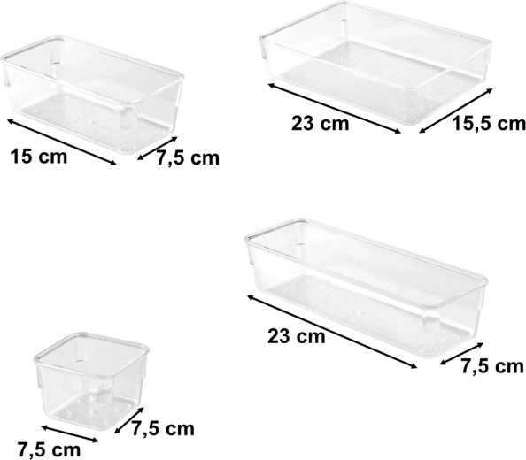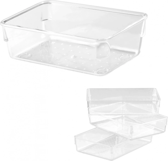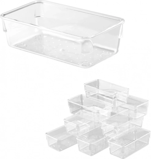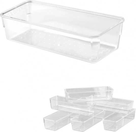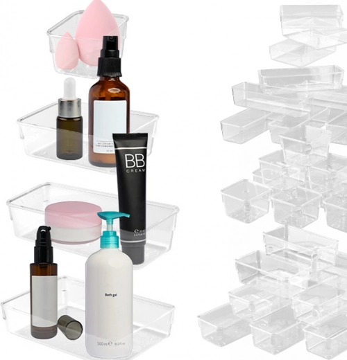 Houd orde in elke lade en op je bureau met een set van 25 transparante acryl organizers in vier formaten. Dankzij hun universele toepasbaarheid, duidelijke transparantie en duurzaam acryl sorteer je moeiteloos kleine spullen in kantoor, badkamer, keuken en werkplaats.