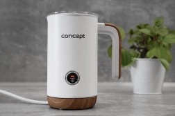 Het apparaat biedt drie bedrijfsmodi: melk opschuimen met verwarming, opschuimen zonder verwarming en alleen verwarming. Besturing is eenvoudig met één knop. De maximale temperatuur van de verwarming bereikt 65 °C.