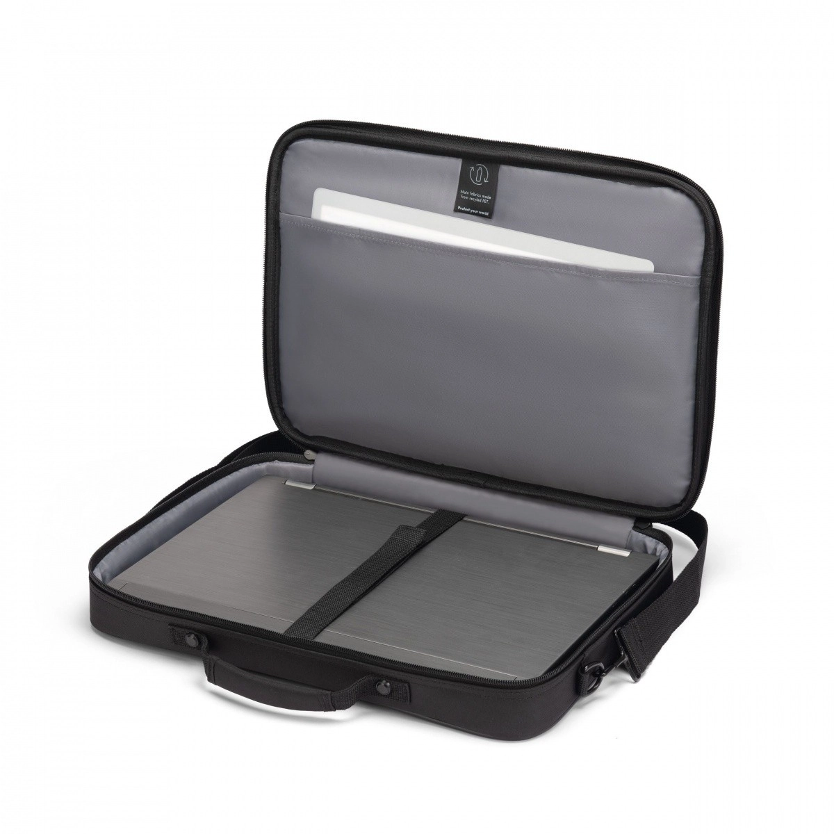 De ONE-laptoptas voor 13–14,1'' combineert dagelijkse praktische bruikbaarheid met veiligheid. De volledige voering en interne fixatieriem beschermen het apparaat tegen stoten en trillingen, terwijl het voorvak met rits je documenten en mobiele accessoires altijd binnen handbereik houdt.