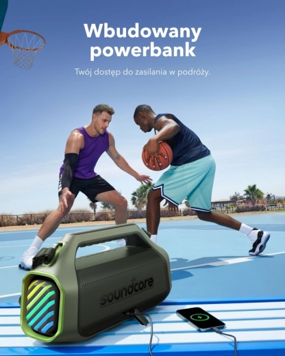 Het robuuste ontwerp met IPX7-classificatie trotseert regen, het zwembad en natte avonturen – de luidspreker drijft zelfs op water. De extra lange accuduur tot 24 uur dankzij de 10.000 mAh batterij en de powerbank-functie om je telefoon op te laden houden je ritme de hele dag gaande.