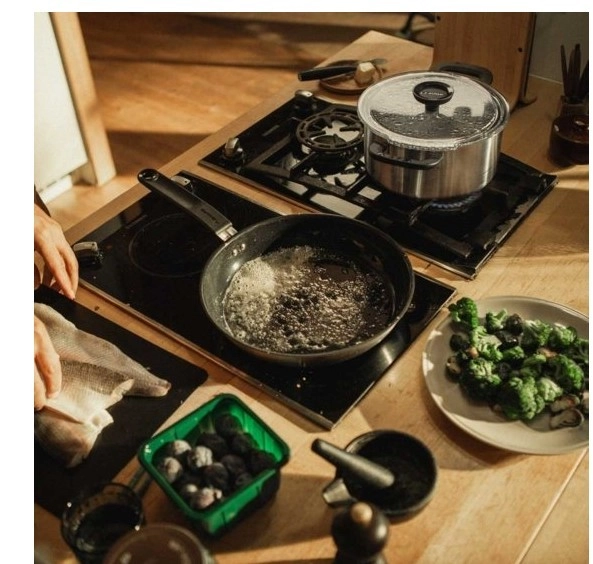 De drievoudige bodem zorgt voor een gelijkmatige warmteverdeling voor efficiënt en consistent koken.