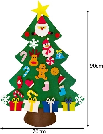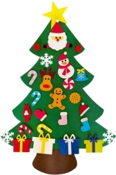 Duurzaam en stevig materiaal: De boom en ornamenten zijn gemaakt van hoogwaardig vilt dat bestand is tegen kreuken en scheuren, waardoor herhaald gebruik gedurende vele seizoenen mogelijk is.