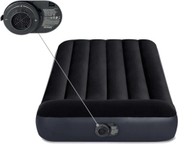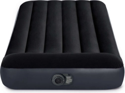 Geniet overal van een comfortabele nachtrust. Dit eenpersoons opblaasbed van INTEX combineert duurzaam PVC met aangenaam, waterafstotend velours dat verschuiven van het hoeslaken voorkomt en het comfort verhoogt. De geïntegreerde pomp bespaart tijd – het matras is in een oogwenk opgeblazen en net zo eenvoudig weer leeggelaten.