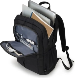 Het afsluitbare laptopvak biedt dubbele bescherming voor uw apparaat van 15-17,3 inch: met rondom padding van hoogdichtheidsschuim (HDF) en een betrouwbare fixatie dankzij de elastische veiligheidsriem. Het ruime hoofdvak biedt voldoende plaats voor documenten of andere benodigdheden. Dankzij het tabletvak tot 12,9" en een band voor het veilig dragen van een koptelefoon zijn uw reisgenoten optimaal beschermd. Het ruime voorvak helpt orde te houden met functionele vakken voor smartphone, powerbank, pennen en ander mobiel accessoire. In de buitenvakken kunt u een waterfles en paraplu kwijt, zodat er ruimte in de rugzak wordt bespaard. Ergonomische rugpadding, comfortabele schouderriemen en een trolleyband aan de achterkant zorgen voor comfort tijdens het vervoer van de rugzak naar werk, universiteit of langere reizen.