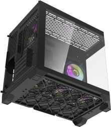 Deze zwarte Darkflash-computerbehuizing is een ideale keuze voor gamingliefhebbers. Met een modern design en zes aRGB-ventilatoren combineert hij efficiënte koeling met een aantrekkelijke uitstraling.