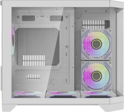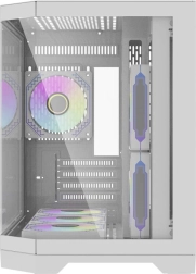De behuizing wordt geleverd met zes voorgeïnstalleerde RGB-ventilatoren die niet alleen bijdragen aan uitstekende koeling, maar ook zorgen voor een stijlvolle gaming-uitstraling. Geniet van aanpasbaarheid dankzij de variabiliteit van RGB-verlichting en uitgebreide koelopties.