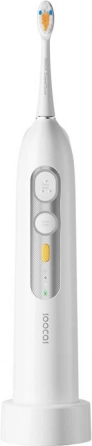 De Soocas Neos T03 brengt een echte revolutie: in één behuizing verenigt hij een sonische tandenborstel en irrigator. Een nauwkeurig geplaatste wateruitlaat in de kop synchroniseert de straal met de beweging van de borstelharen, waardoor het tandoppervlak, de tandvleesrand en moeilijk bereikbare interdentale ruimtes effectief worden gereinigd. De speciale W‑vorm van de borstelharen, 80% afgeronde uiteinden voor zachtheid en een slijtage-indicator (aangetaste haren vervagen na verloop van tijd) helpen om een perfecte techniek en tijdige vervanging van de opzetborstels te behouden.