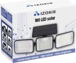 De slimme IZOXIS zonne-lamp combineert krachtige verlichting met maximaal comfort en energiebesparing. Dankzij het efficiënte zonnepaneel laadt hij ook bij minder gunstig weer op en gaat automatisch aan bij schemering. De gevoelige PIR-sensor detecteert beweging op 8–10 m en verhoogt direct de helderheid naar 100% voor uw veiligheid.