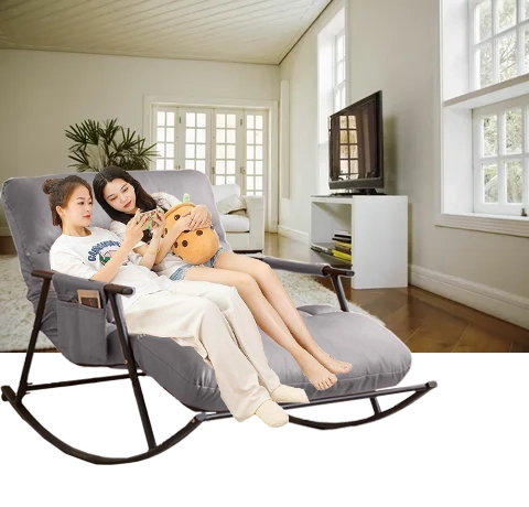 De elegante grijze schommelbank voor twee combineert modern design met een stevig frame. Zachte, doorgestikte kussens met hoogwaardige PP Cotton vulling bieden ondersteuning voor rug en benen tijdens lezen, tv-kijken en ontspannen met z’n tweeën. Het zwarte metalen frame zorgt voor soepele en veilige schommeling, ideaal in de woonkamer of op een overdekt terras.