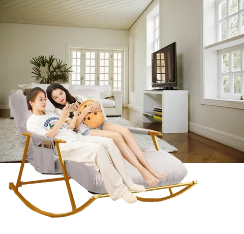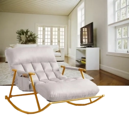 Geniet met z’n tweeën van ultieme ontspanning. Deze ruime dubbele schommelstoel combineert een modern design, een stabiele goudkleurige metalen basis en uitzonderlijk comfortabel kussenwerk. Dankzij de brede zitting, ergonomische kussens, verstelbare rugleuning en voetensteun en een praktisch zijvak is hij ideaal voor de woonkamer, het terras en de serre.