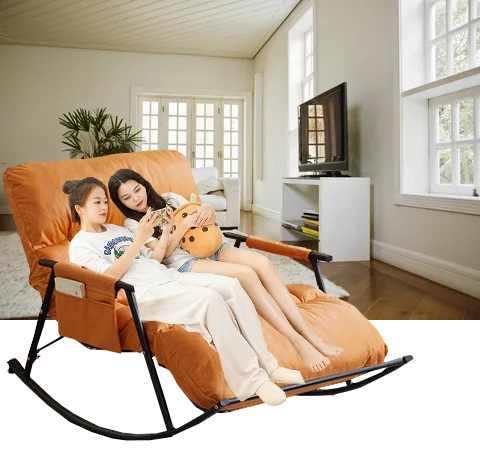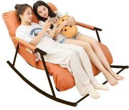 Dubbele schommelstoel met zwarte metalen voet - oranje