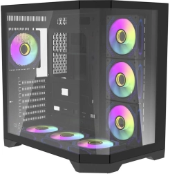 De Darkflash FT418 Pro biedt een modern uiterlijk met een panoramisch zicht op het interieur dankzij drie panelen van gehard glas. De robuuste constructie van 0,5 mm SPCC-staal zorgt voor stabiliteit, terwijl de doordachte interne indeling voldoende ruimte biedt voor krachtige componenten – inclusief GPU’s tot 400 mm lang en PSU’s tot 200 mm.